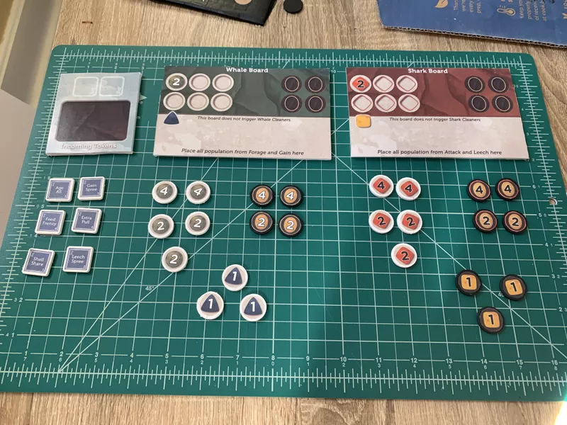 In the Oceans: Solo expansion, you face an automated opponent named Oceanic. Explore the depths alone and discover if your species can survive and thrive against the challenges of unknown waters.