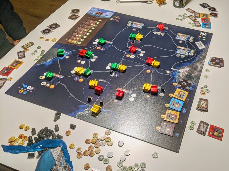 The vast oil reserves off of the Norwegian shores is an environmentally controversial topic, but it undoubtedly remains one of the most important contributors to the country's massive wealth. Offshore is a lightweight competitive strategy game about this highly specialized industry.
