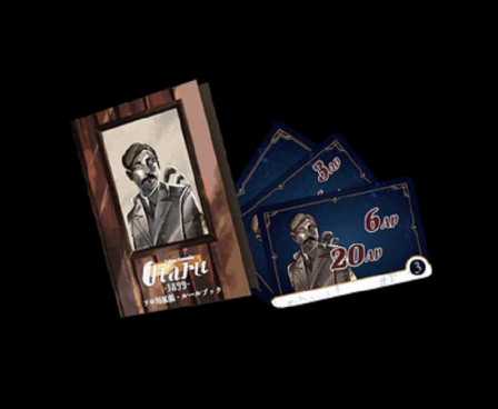Expands Otaru 1899 with individual goal cards. Each player is dealt two ambition cards at the beginning of the game. When a player fulfills the condition on a card, they can claim its special effect. They then discard their extra ambition card.