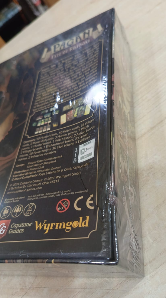 Pagan: Fate of Roanoke is an expandable deduction card game set in the colonial America of 1587. The essence of this asymmetrical game is a witch #39;s struggle against a witch hunter. As the witch strives to complete a ritual of renaturation, the hunter tries to discover her true identity among nine villagers. Each turn, the two players use their action pawns on active villagers to draw cards, play cards, and gain influence. Each player has their own variable card deck of fifty cards; with these cards, the witch can brew powerful potions, improve their familiar, and cast enchantments and charms, while the witch hunter enlists allies, claim strategic locations, and ruthlessly investigates the villagers. As the witch, your objective is to collect enough secrets to perform a ritual so potent that the entire region will fall under your spell and Mother Nature will reclaim the island. As the hunter, you gather all the allies and support you can muster to bring the witch to justice before her fatal ritual comes to fruition. The prototype won the Danish design award Otto at the Fastaval for best game of show in 2018.