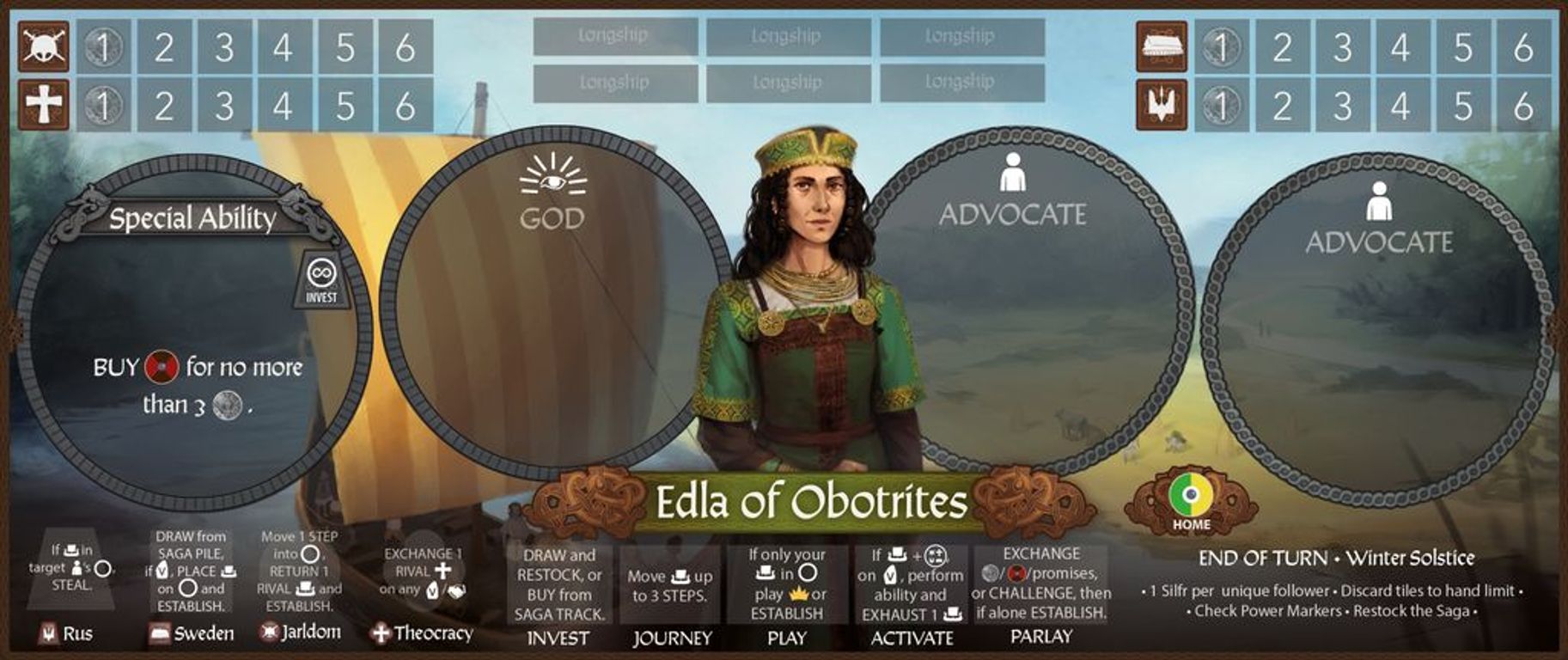 The areas under Norse control are vast. The administration of power is becoming increasingly complicated. The Viking longships are excellent for travelling both at sea and on rivers. In the western part of Europe, your neighbour Jarls in Denmark and Norway are pillaging the lands. It is wise to be on good terms with these Powerful Allies. You interact with them by travelling to their Posts in the West. But you are also aware of the economic advantages to be gained by having followers in the strong Trade Center of some existing larger cities as well. It is up to you to weave and navigate a successful saga within Pax Viking in order to become the first Swedish monarch!