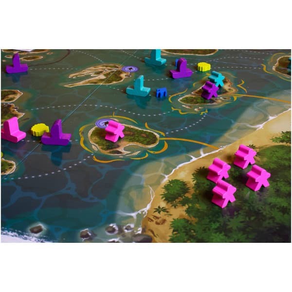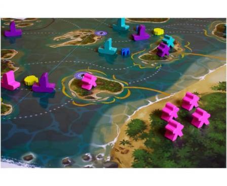 In Polynesia, players must save their tribe members from the dangers of the volcano by taking them to the islands that will give them the most points. At the same time, players must try to reach the objectives set by the tide cards, which will vary from one game to another. To succeed, players must collect resources in the form of fish and shells that will allow them to explore new sea routes, use the routes of other players, and sail from one island to another.