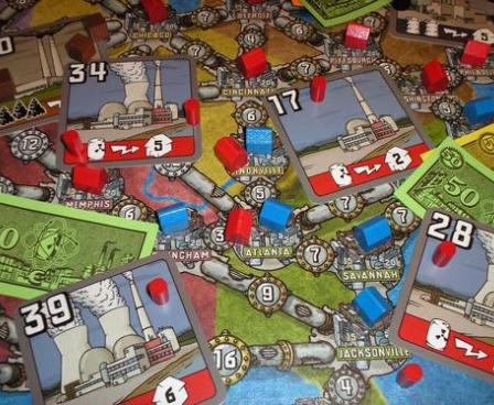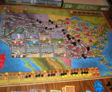 Power Grid is the updated release of the Friedemann Friese crayon game Funkenschlag. It removes the crayon aspect from network building in the original edition, while retaining the fluctuating commodities market like Crude: The Oil Game and an auction round intensity reminiscent of The Princes of Florence.