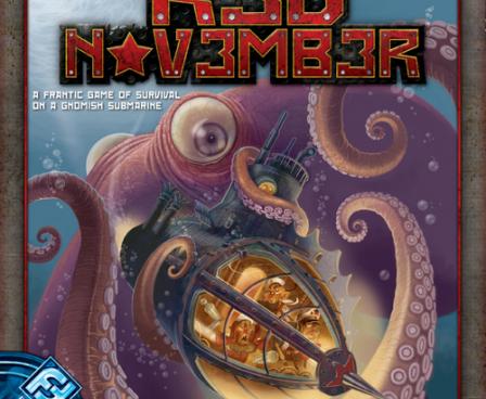 Red November is a cooperative game in a gnomish attack submarine where everything is going wrong. The sub is descending and the water pressure increasing, the nuclear reactor is overheating, the nuclear missile launchers are pre-igniting, fires and water leaks are everywhere, there's a giant Kraken looming nearby and theres very little oxygen and vodka left.