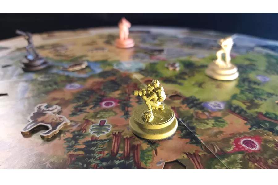 During their turn, each player will have to choose between different movements and their angle of view (materialized by real plastic elements) to catch the animals in the picture (without disturbing them).