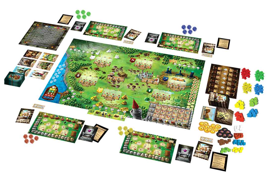Rise to Nobility is a worker (dice) placement game set in the same fantasy world as Cavern Tavern. You each own a small piece of land in the newly built city, and your job is to rise from anonymity, make your way to the title of lord, and take over the head seat at the Stone Council.