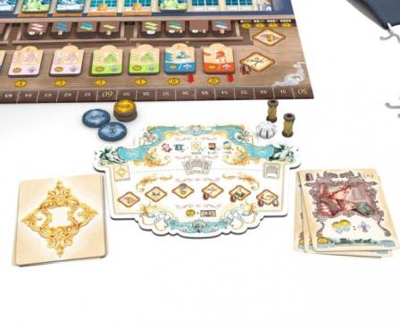 In Rococo: Deluxe Edition, you are the owner of a distinguished tailoring business endeavoring to increase your prestige. Each turn, you play an employee card that allows you to perform a task, such as hiring a new employee for your staff, tailoring exquisite gowns and frock coats to rent or sell, or funding some of the many decorations. However, employees are not always able to perform all tasks, so you must plan carefully how you direct them, especially as each employee grants a unique bonus — including some that generate prestige.