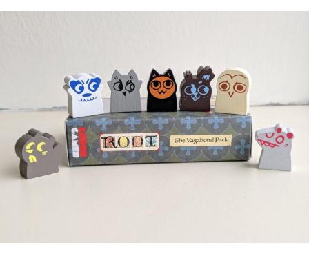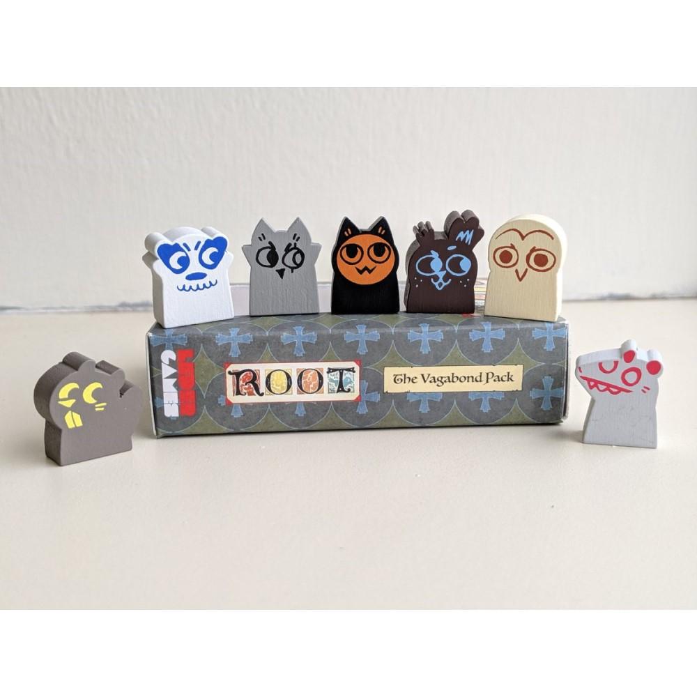 Upgrade your Root game with seven custom Vagabond meeples. Includes three new Vagabond character cards: Harrier, Ronin and Adventurer.