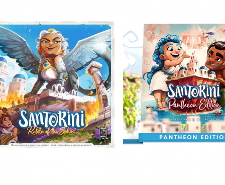 Santorini: The Riddle of the Sphinx is a co-operative expansion for Santorini that adapts the competitive experience into an ongoing adventure that players navigate together.