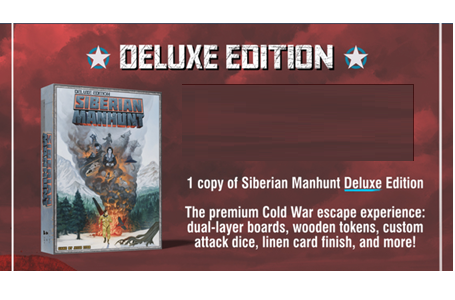 Siberian Manhunt is an asymmetrical hidden movement game for two players. One player takes the role of a U-2 spy plane pilot who has crashed behind enemy lines and must escape across the border into China. The fugitive must use their wits to navigate the dangerous landscape, survive encounters with predatory animals, and avoid starvation and hypothermia, all while being pursued by the KGB. Do they dare enter towns, risking detection by the local authorities, or will they strike out into the wilds and rely on their wilderness survival skills to stay alive?