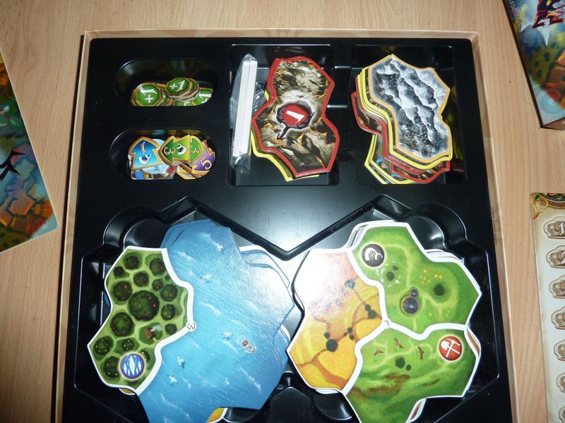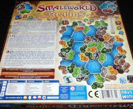 Small World Realms can be used with either of the series' base games: Small World or Small World Underground. To accomplish this, the tiles are two-sided with one side for the base game and the other for the underground version.