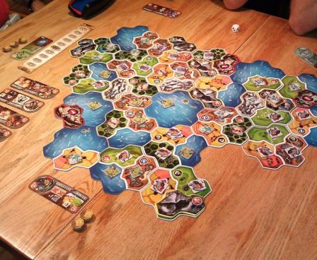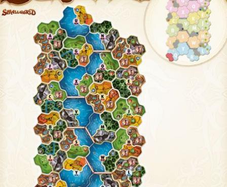Small World Realms includes scores of puzzle-like geomorphic Terrain regions that are assembled into variously sized and shaped board maps. Map designs are based on any of the 12 preset Scenarios created by the game's designer, Philippe Keyaerts. Players can also create their own maps and scenarios using the components included.