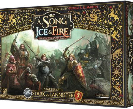 The Stark vs Lannister Starter Set has everything needed for two players to fight epic battles. Containing forces for both House Stark and House Lannister, players build their armies, select leaders, construct their tactics deck, and engage in one of five different game modes.