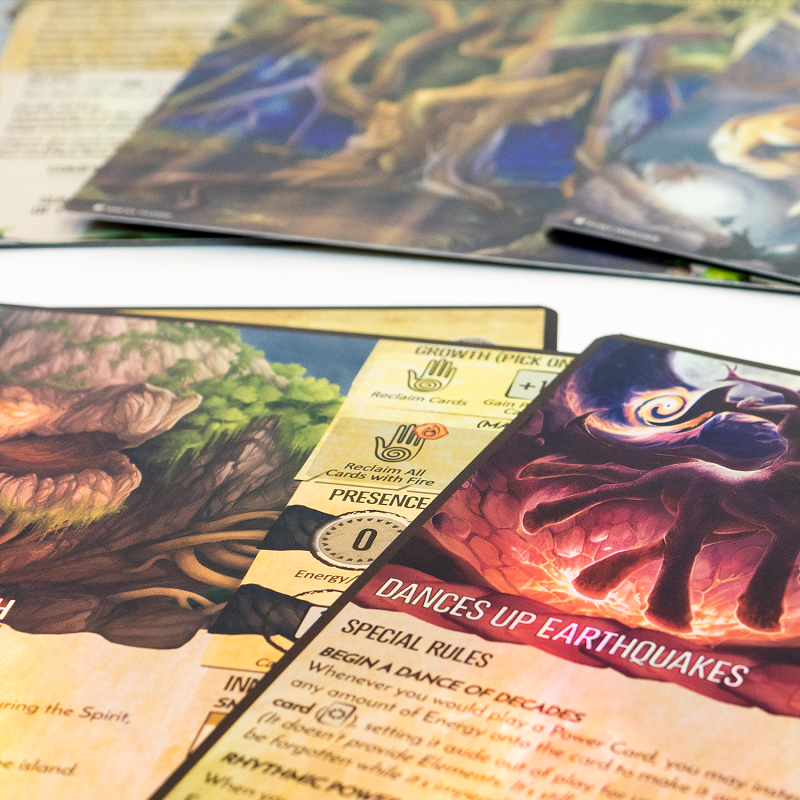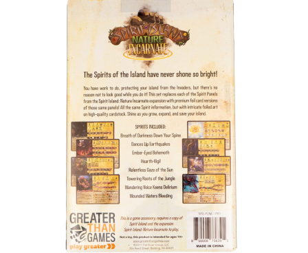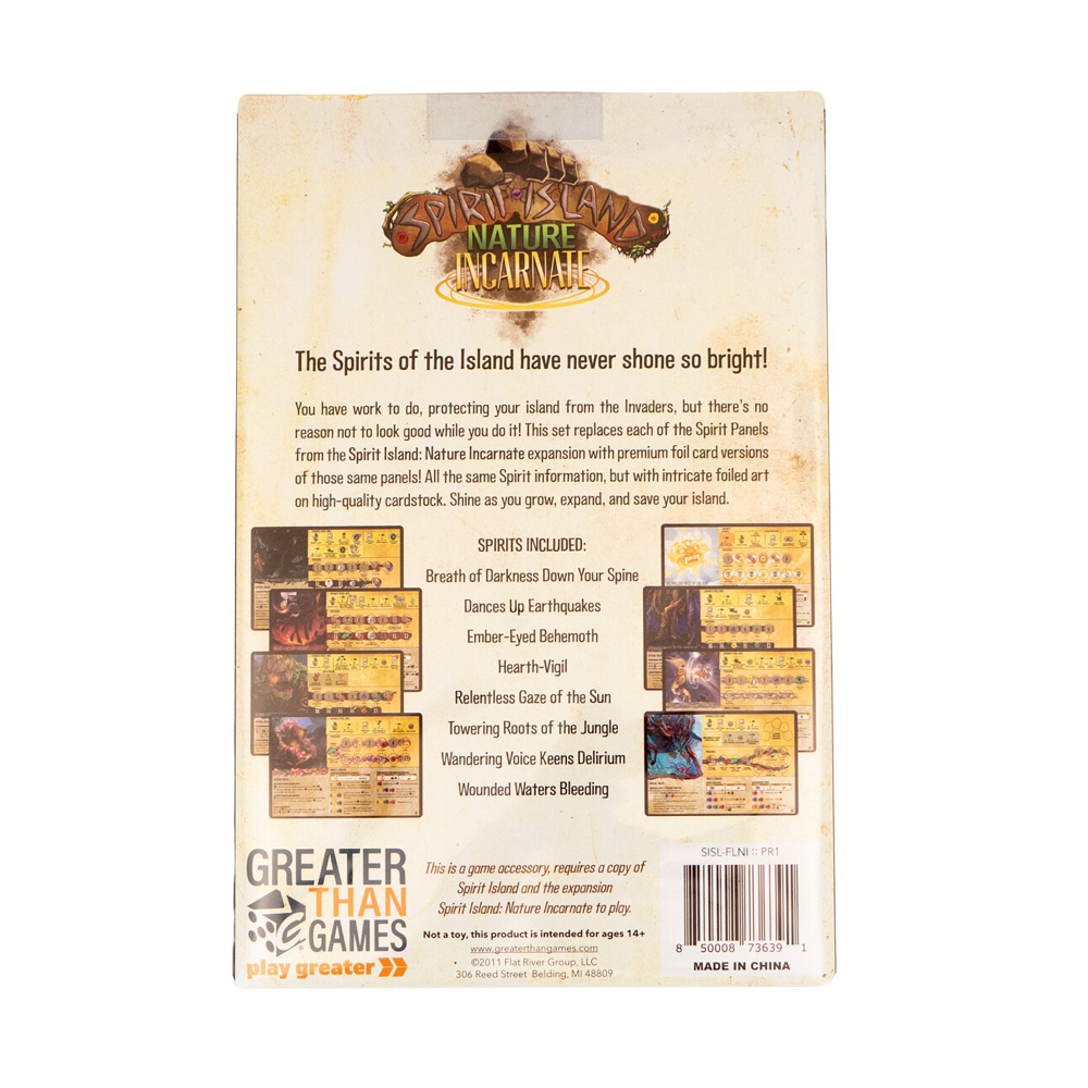 You have work to do, protecting your island from Invaders, but there’s no reason not to look good while you do it! This set of Spirit Panels replaces each of the Spirit Panels from the board game Spirit Island: Nature Incarnate expansion with premium foil card versions of those same panels!