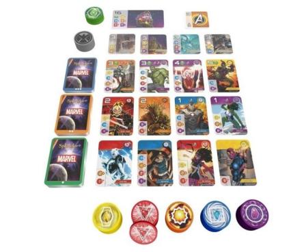 Even though Splendor Marvel uses Splendor’s core rules and high-quality materials, it has a different color structure, a new endgame trigger, and new victory conditions. You can also gain Infinity Points with the Avengers Assemble tile that can be passed from one player to another several times during the game!