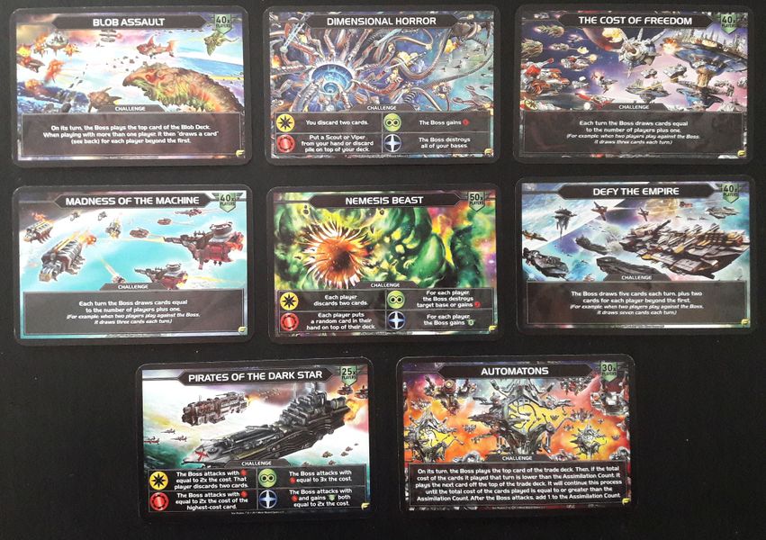 An all-new 80-card trade deck featuring some new mechanics like the double ally ability which really rewards you for focusing on a single faction!
