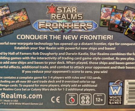 Star Realms: Frontiers is a new standalone Star Realms game with an 80-card trade deck and new scorecards that's suitable for play with up to four players. It can be combined with Star Realms and/or Star Realms: Colony Wars.