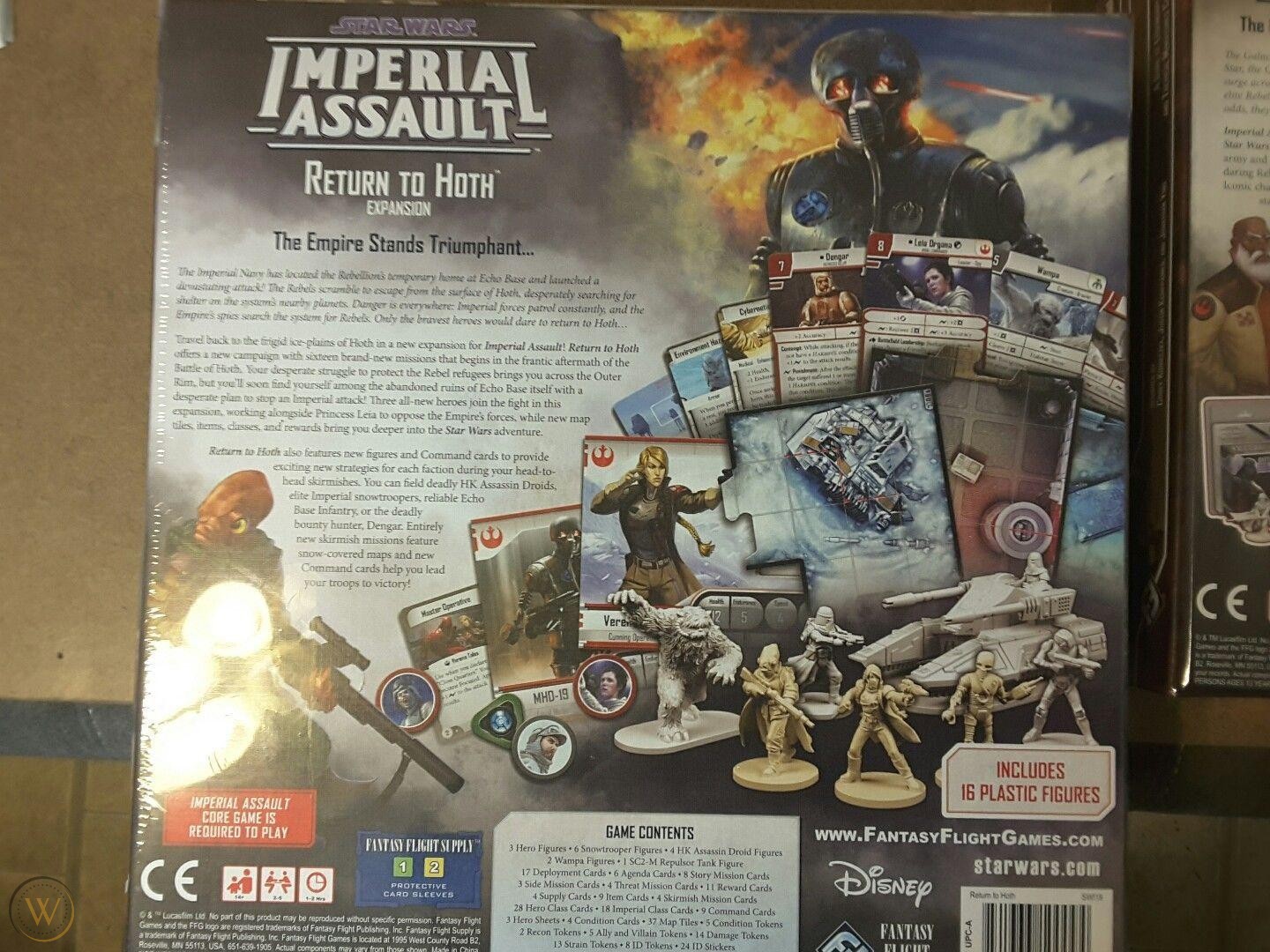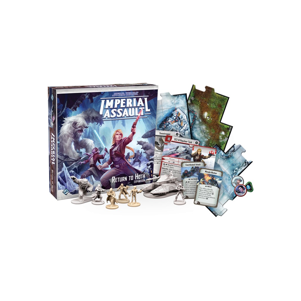 Return to Hoth is a new expansion for Imperial Assault, offering plenty of new content for the campaign and skirmish games. A new full-length campaign allows the Rebel heroes to take up a new story in the aftermath of the Battle of Hoth, while new rules for four-player skirmish games for you to play a massive, multi-fronted battle. With thirty-seven double-sided terrain tiles depicting the icy wastes of Hoth, sixteen sculpted plastic figures to swell your forces, and a host of cards for both campaigns and skirmishes, Return to Hoth changes your games of Imperial Assault forever!