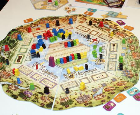 In The Staufer Dynasty, the players are nobles in the 12th century, accompanying Henry VI on his tour of the areas of Europe brought under control by the Staufer family, an area that included much of modern day Germany, went from the Baltic Sea in the North to Sicily in South. You're eager to improve your own lot in the land by placing envoys and nobles in positions of power in the six regions represented in this game.