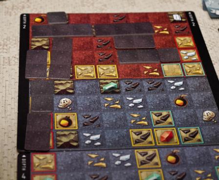 Super Motherload features game boards that are added and removed during play to create videogame-like scrolling action, and it challenges spatial relation skills for 2-4 players who love video games, Eurostyle board games, or deck-building card games.
