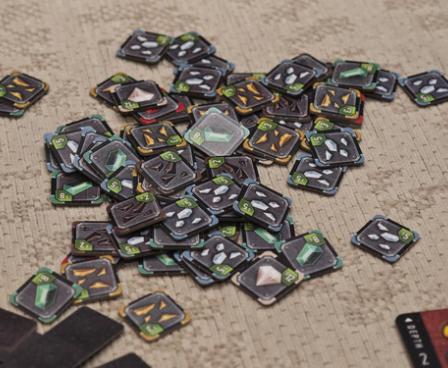 Super Motherload is a tile-laying deck-building game, which means that you have your own deck of cards from which you draw each turn. The cards in your deck start out very basic, but over the course of the game you add new and more powerful cards to it. You use these cards to bomb and drill minerals and other bonuses from the game board. You then use the minerals you've collected as money to purchase better cards for your deck. Some cards give you an immediate bonus when you purchase them, and some give you other bonuses when you use them to drill. Each card you purchase from your library is worth victory points (VPs). You can also gain VPs from achievement cards that become available throughout the game. Whoever has the most VPs at the end of the game wins.