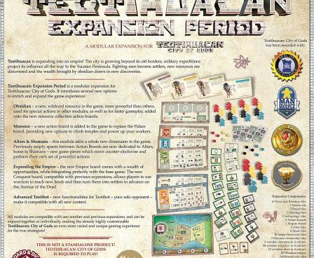 Teotihuacan: Expansion Period is a modular expansion for Teotihuacan: City of Gods. It introduces several new options to enrich and expand the game experience.