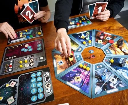 In Too Deep is a unique, narrative that thrusts you into the future in a tense, strategic board game for 1-4 players. Draft characters and spend actions to complete objectives and collect sets. What side of the law will you end up on?