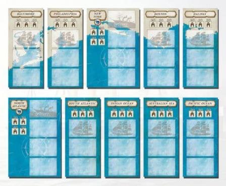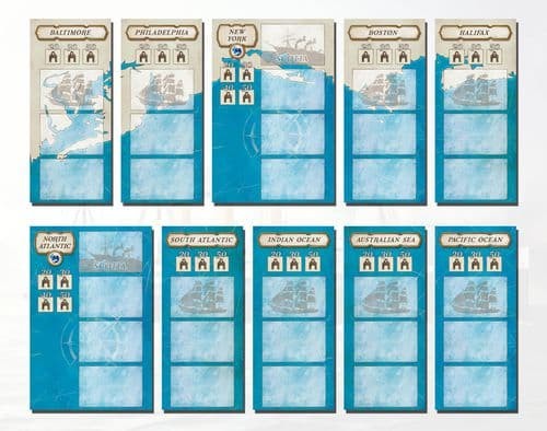 The game is driven by cards; on each turn, play one card and execute the related action. As new cards enter the game, build your individual deck of cards with new or improved possibilities. The task is to manage your merchant fleet most efficiently. It's a maritime strategy game with low luck, lots of interactive choices, and tough decisions