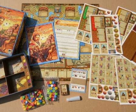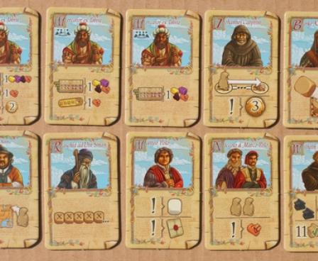 In The Voyages of Marco Polo, players recreate this journey, with each player having a different character and special power in the game. The game is played over five rounds. Each round, the players roll their five personal dice and can perform one action each turn with them.