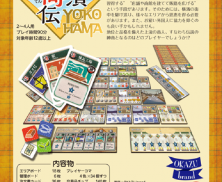 In YOKOHAMA, each player is a merchant in the Meiji period, trying to gain fame from a successful business, and to do so they need to build a store, broaden their sales channels, learn a variety of techniques, and (of course) respond to trade orders from abroad.
