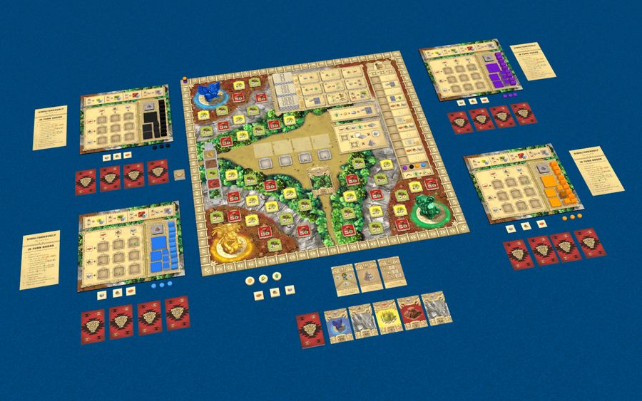 In a game of Zapotec, you build temples, cornfields and villages in the three valleys surrounding the capital to generate resources needed for building pyramids, making sacrifices to the gods, and performing rituals.