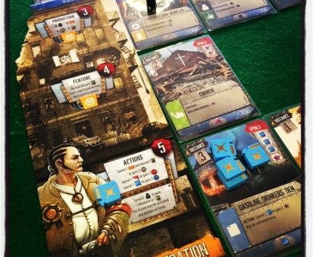 51st State is a card game in which players control one of four powers trying to build a new country. Players put new locations into play, hire leaders, and send people to work in buildings to gain resources and new skills. To do this, every card in 51st State can be used in three different ways: