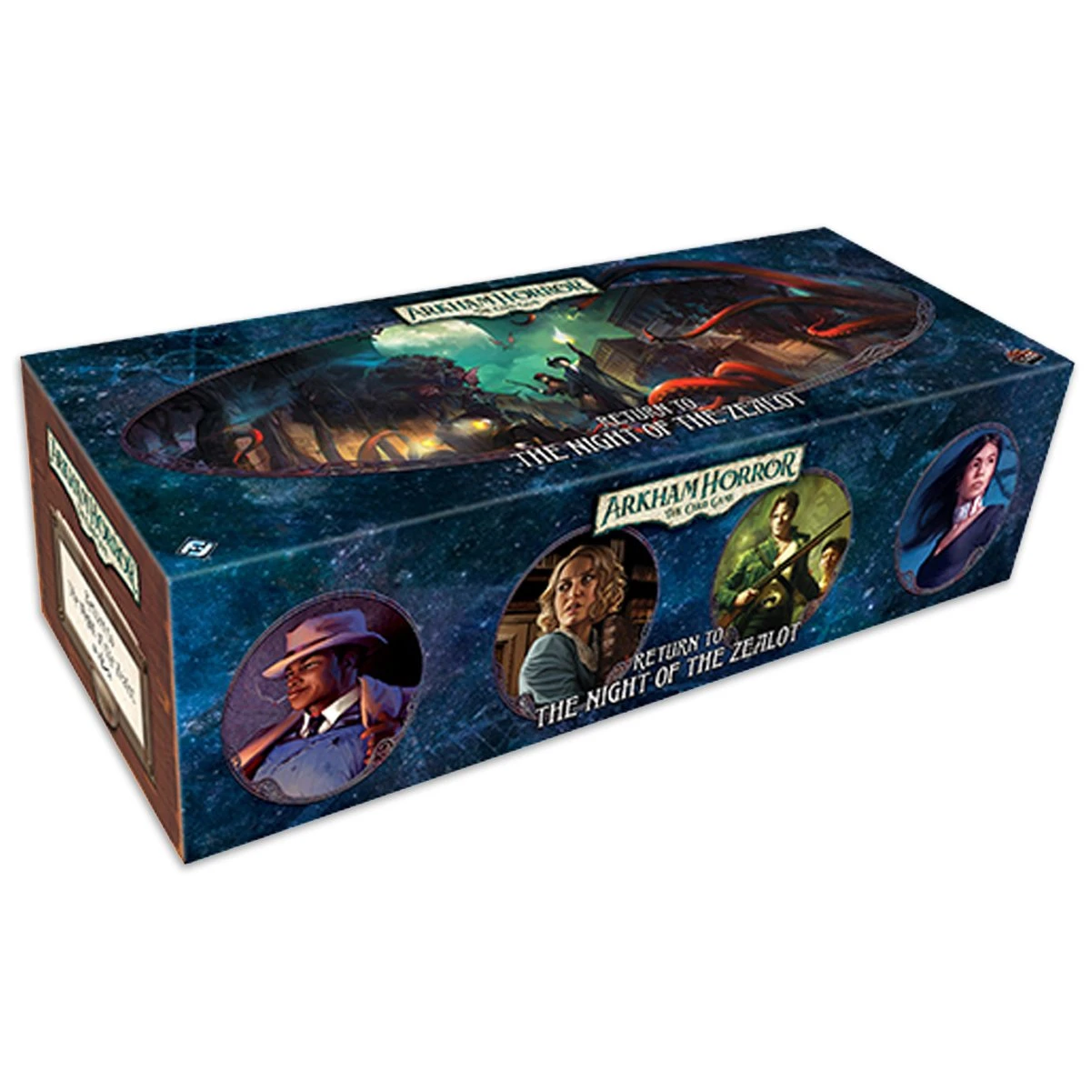 Return to the Night of the Zealot is an expansion for Arkham Horror: The Card Game that enhances and modifies the Night of the Zealot campaign with 46 new Encounter cards and 20 new Player Cards. Additionally, this expansion includes a premium box and 18 divider cards to hold your entire Night of the Zealot campaign.