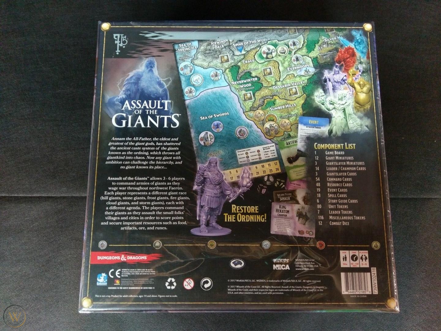 Based on the story first presented in the Storm Kings Thunder adventure from Dungeons & Dragons, Assault of the Giants is a new board game designed by Andrew Parks for 3-6 players. Players will need to command armies of giants as they wage war throughout northwest Faern. Order your giants to assault small folk villages and cities to score points and secure resources including food, artifacts, ore, and runes.