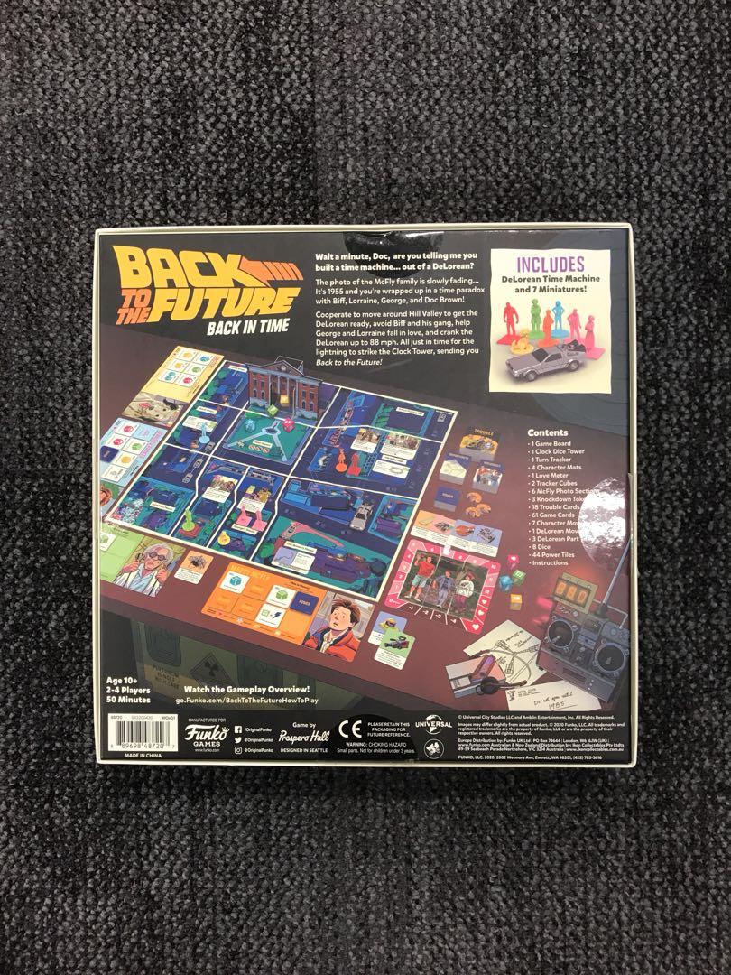 In the fully co-operative game Back to the Future: Back in Time, each player takes on the role of a major character from the movie: Marty McFly, Doc Brown, Jennifer Parker, or Einstein the dog. The objective of the game is to have the characters move around 1955 Hill Valley, collecting certain items in an effort to fix Doc's famous DeLorean time machine, defeat Biff Tannen and his gang of trouble-making friends, while ensuring that Marty's parents fall in love. Only when that is accomplished can players then accelerate the DeLoreon to 88 MPH down Main Street before the clock tower strikes 10:04 pm!