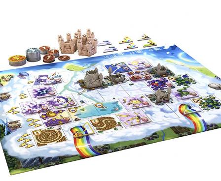 Bunny Kingdom in the Sky adds a new game board to the world of Bunny Kingdom that allows you to link fiefs in the sky with those on land. Aside from the game board, this expansion includes new cards, new types of resources, a set of playing pieces that allow five bunnies to play in the same game, and a larger type of building that increases your influence in that area by a factor of five.