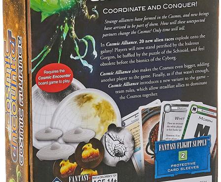 This optional Team Cosmic variant places players in randomly determined teams of two, in which they'll attempt to conquer the Cosmos cooperatively. Without discussing their race selection in advance, partners sit opposite each other at the table, where they can occasionally offer a helping hand; whenever a player gains a new foreign colony, he can choose to instead give that colony to his partner.