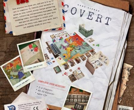 Control your network of spies, gather intel, and break codes in Covert, a game of tactical dice placement, set collection, and timing set in Cold War Europe. Players race to complete high risk Missions by deploying their agents and acquiring the necessary equipment, all while keeping an eye on the needs of future missions and the advances of rival agencies.