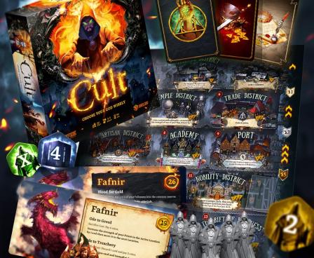 You can win the game in different ways: by building five chapels, by leading the city's mob uprising, or by performing a dark ritual to summon your cult's master — one of eight dark gods.