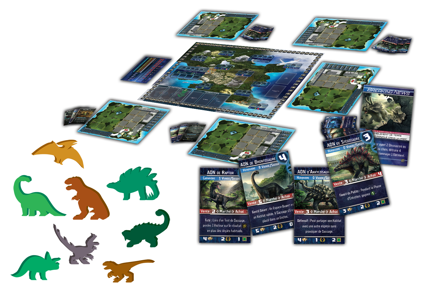Each player is the head of their own corporation with access to their own private island resort. Each season, players assign agents to the mainland to compete over DNA and other limited resources. Once collected, players can build fences, various park facilities and populate their parks with dinosaurs. Parks with the most prestigious dinosaurs will attract the most visitors. But beware; if dinosaurs are neglected or improperly penned, they will attempt to escape and spread havoc through the entire park.
