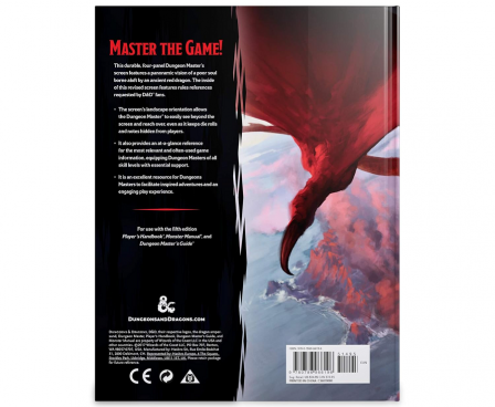 Lost is the poor soul borne aloft in the grip of the ancient red dragon featured in a spectacular panoramic vision by Tyler Jacobson on this durable, four-panel Dungeon Master’s Screen. The interior rules content on this new screen has been revisited and refreshed as a direct result of feedback received from D&D fans everywhere.