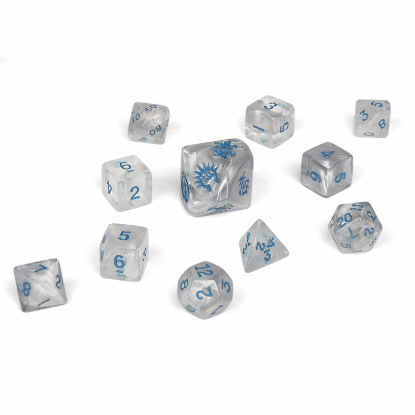 One d20, one d12, two d10s, one d8, four d6s, one d4, and one guild die