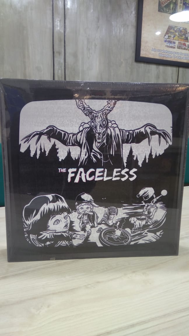 The Faceless is a full cooperative experience with a never-seen-before mechanism: You indirectly move a compass by moving and rotating the double-sided miniatures on the game board. By playing cards from your hand, you can rotate and move these miniatures and, since they have all a magnet inside, you change the magnetic field they generate, thus influencing the direction of the compass needle. After playing a card, the compass moves in the direction indicated by its needle, but after every movement, the direction of the needle can potentially change, forcing you to move in new directions. Learning to control and predict these movements is vital to success in the Duskworld!