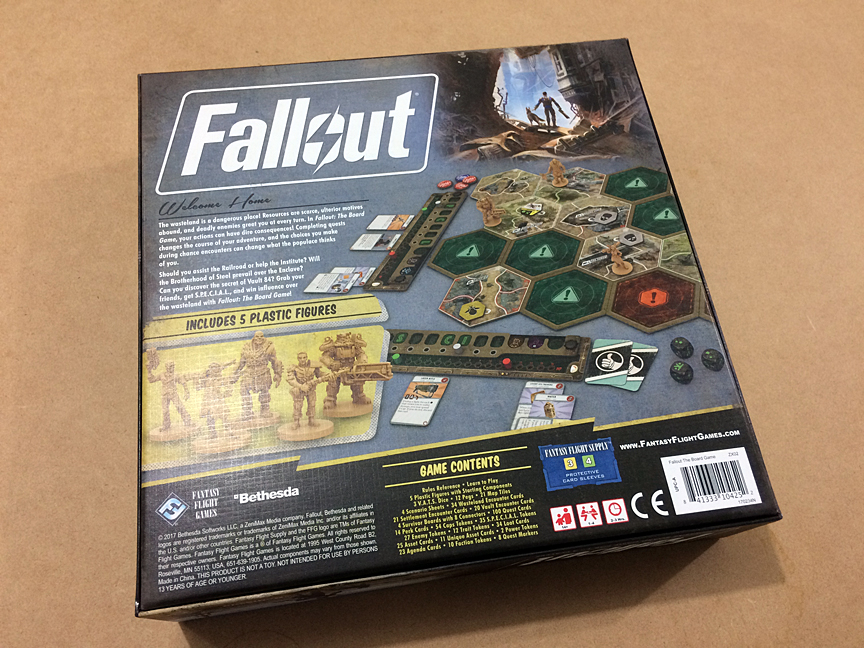 Fallout is a post-nuclear adventure board game for one to four players. Based on the hit video game series by Bethesda Softworks, each Fallout scenario is inspired by a familiar story from the franchise. Survivors begin the game on the edge of an unexplored landscape, uncertain of what awaits them in this unfamiliar world. With just one objective to guide them from the very beginning, each player must explore the hidden map, fight ferocious enemies, and build the skills of their survivor as they attempt to complete challenging quests and balance feuding factions within the game.