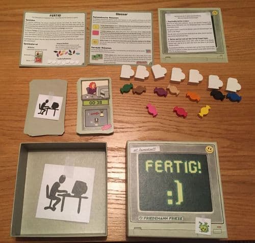 You start Finished! with a shuffled deck of 48 cards and try to sort these cards by cycling through the draw stack during eight rounds. You may sort cards only in your "present" area, but helpful actions will let you manipulate your cards in many different ways. If you sort all cards starting from card 00:01 up to card 00:48, you win the game! If this is too easy for you, the game offers four difficulty levels.