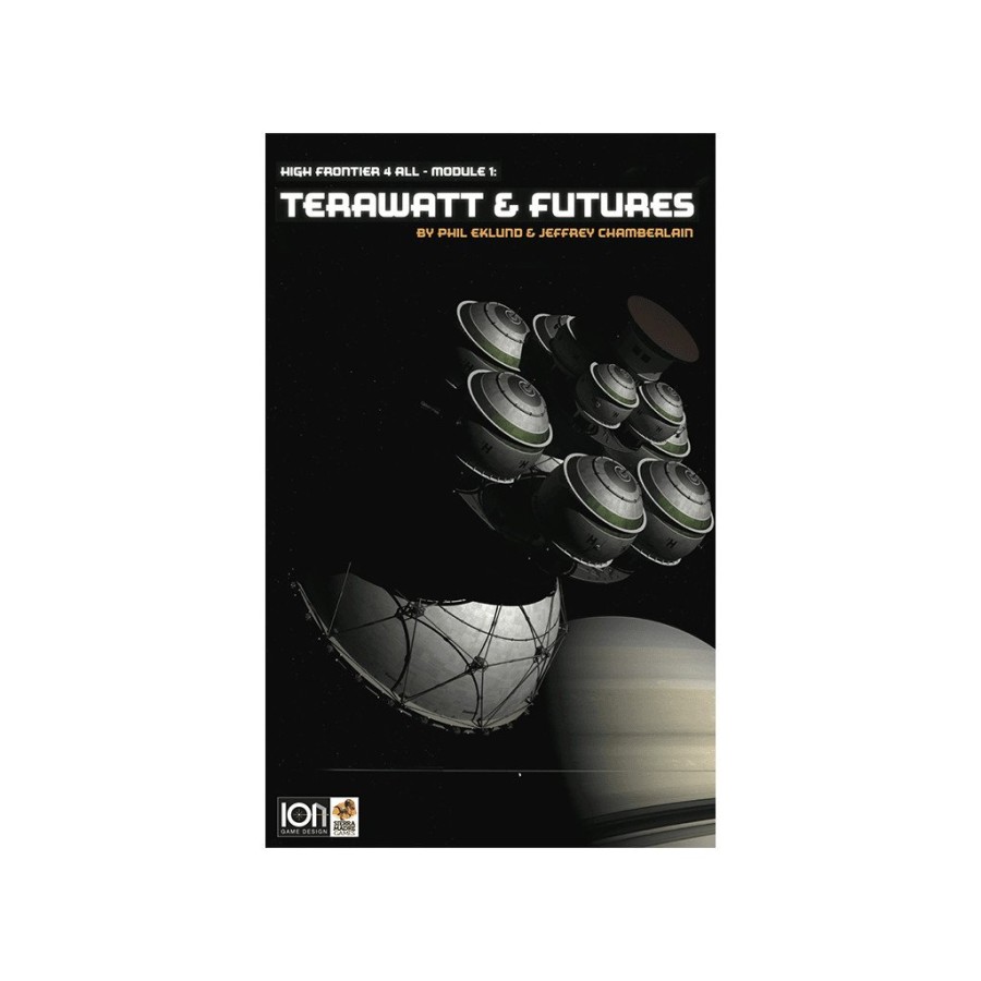 Module 1 - Terawatt introduces two new patent decks: Freighters and GW Thrusters. Freighters are a new type of patent card allowing the transport of valuable factory goods back to Low Earth Orbit. GW Thrusters are more powerful and efficient versions of the MW Thrusters of the core game, allowing your Spacecraft to reach the outer planets more easily. This module also optionally introduces Futures which are special game goals to earn victory points.