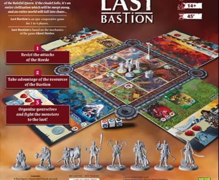 Last Bastion is a cooperative game in which the players take on the roles of heroes defending an ancestral Bastion against the monstrous hordes of the Baleful Queen. The players struggle together against the game, either they all win victory, or else they all suffer defeat.