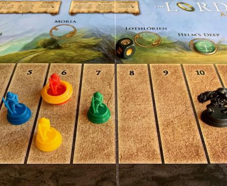Over the course of the game, you make your way across four conflict game boards, representing some of the most memorable conflicts from the entire trilogy: Moria, Helm's Deep, Shelob's Lair, and Mordor. Each conflict board tests your small Fellowship to the utmost as you must play your quest cards to advance along multiple tracks. These tracks represent fighting, hiding, traveling, and friendship, and by playing quest cards from your hand with matching symbols, you can keep moving forward and push closer to victory.