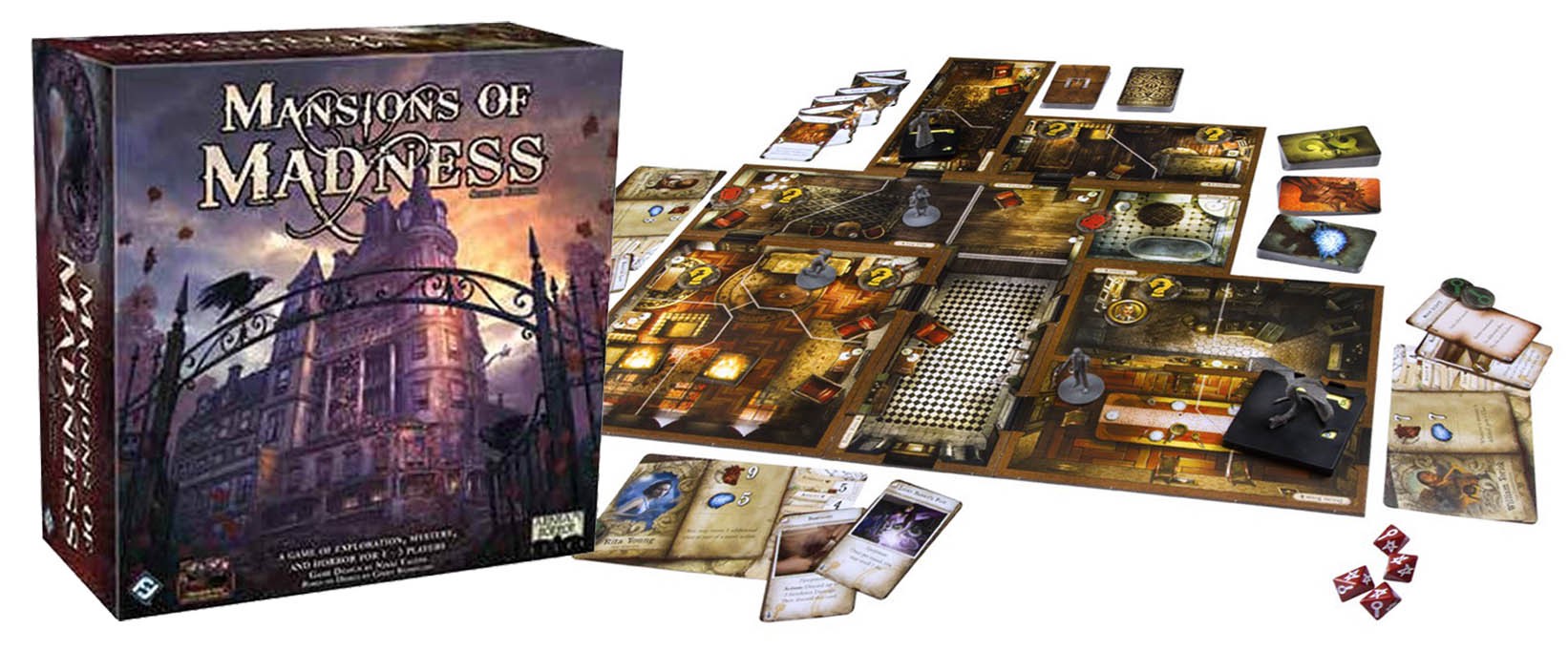Mansions of Madness: Second Edition is a fully cooperative, app-driven board game of horror and mystery for one to five players that takes place in the same universe as Eldritch Horror and Elder Sign. Let the immersive app guide you through the veiled streets of Innsmouth and the haunted corridors of Arkham's cursed mansions as you search for answers and respite. Eight brave investigators stand ready to confront four scenarios of fear and mystery, collecting weapons, tools, and information, solving complex puzzles, and fighting monsters, insanity, and death. Open the door and step inside these hair-raising Mansions of Madness: Second Edition. It will take more than just survival to conquer the evils terrorizing this town.