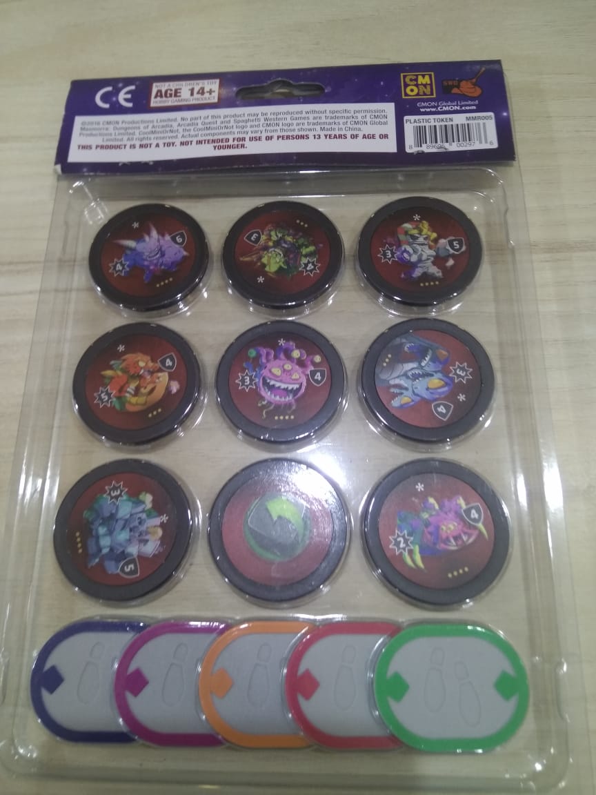 The Plastic Token Pack contains 14 high-quality tokens to make sure you’re able to fully replace the cardboard tokens in your game with plastic ones. The pack includes 5 Step Tokens, and not only the 5 Boss Tokens from the Masmorra core box, but also the 2 Boss Tokens from the Adventurers Set and the 2 Boss Tokens from the Monsters Dice Set.